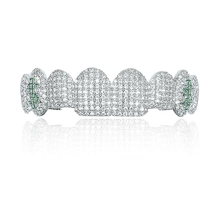 Generic 18K vergoldete Dazzling Zähne Grillz - luxuriöse Zirkonia & simulierte Diamant, alle Iced Out Design für Männer und Frauen, mit Bonus Extra Molding Bars,Grün,Upper teeth