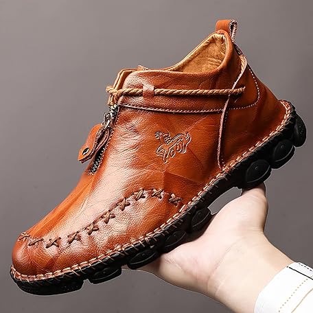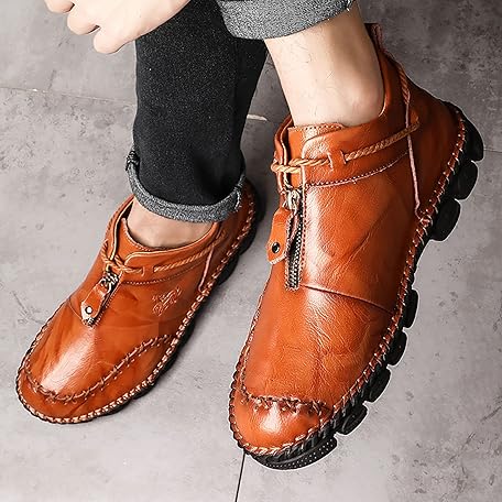 Sản phẩm Generic N Shoes Men's British High Top Handmade Leather Shoes for Men Korean Version Trend Large Round Toe Zip Shoe Trainers Men 44 Red đang được bán với giá ưu đãi là $155.1615 tại nước Đức.