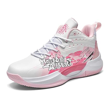 • Generisch Herren-Basketballschuhe, hochgeschnitten, aus Leder, mit runder Zehenpartie, Schnürung, Dicker Sohle, stoßdämpfend und rutschfest, modischer Sportschuh(Pinks,39 EU)