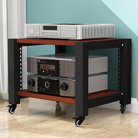 Generisch Multifunktionales 5-stufiges Audio-Rack und Medienständer, Verstellbarer DVD- und Stereoschrank, AV-Gaming-Aufbewahrungsregale, kompaktes Entertainment-Center (Teak, 60 x 50 x 40)