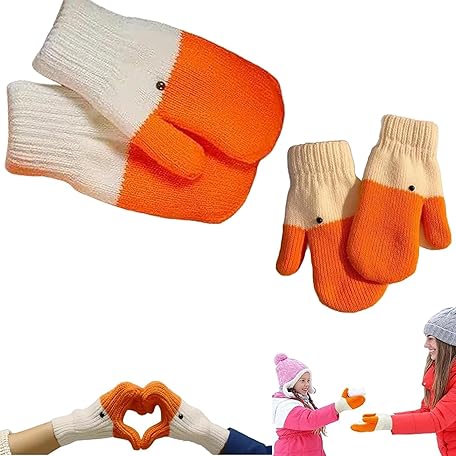 Generisch Silly Goose Gloves for Cosy Hands - Knitted Fleece Lined Funny Gloves, Cute Winter Goose Mittens for Women & Kids, Soft Fleece Lined Warm Glove with Elastic Cuffs