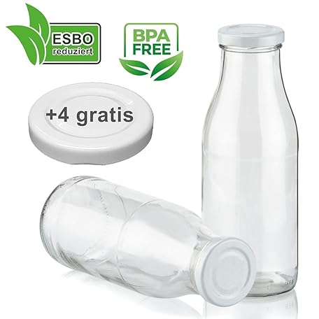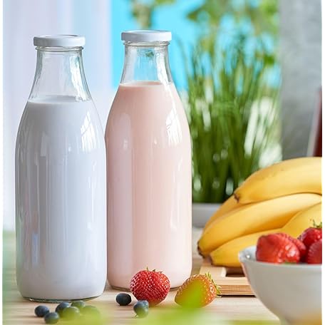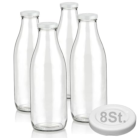 Sản phẩm Geniess-Bar! 4 Milk Bottles 1 Litre with Lid and Replacement Lid 1 Litre Glass Bottles Available with 2/4/6/9/12/15 Juice Bottles 1000 ml Bottles Wide Mouth Bottles Empty with Screw Lid Storage Jar đang được bán với giá ưu đãi là $11.445 tại nước Đức.