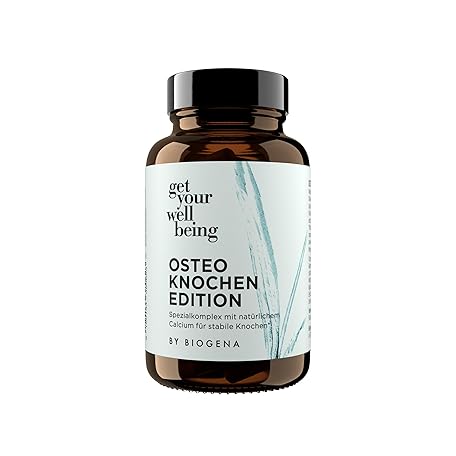 get your wellbeing by BIOGENA - Osteo Bone Complex with Natural Calcium from Sango Sea Corals - With Magnesium Blend, Vitamin D3, K2 & C - 60 Capsules - Vegan & Preservative-Free Supplements