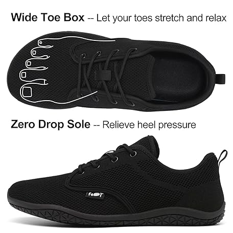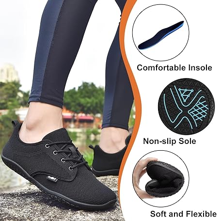 Geweo Unisex Wide Barefoot Shoes, Minimalist Barefoot Trainers, Outdoor Running/Walking Shoes, Comfortable, Breathable Running Shoes