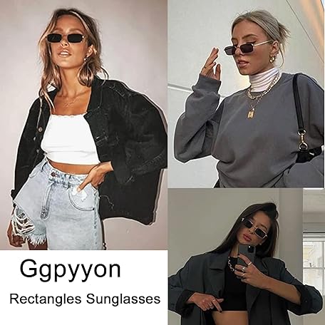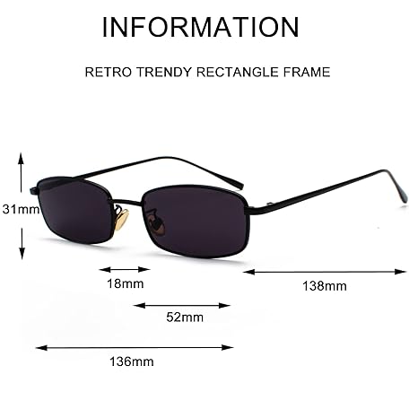 Thông tin sản phẩm Ggpyyon Vintage Rechteckig Sonnenbrille für Damen Herren,Retro Schmale Brille UV-Schutz Sunglasses(Schwarz/Grau)