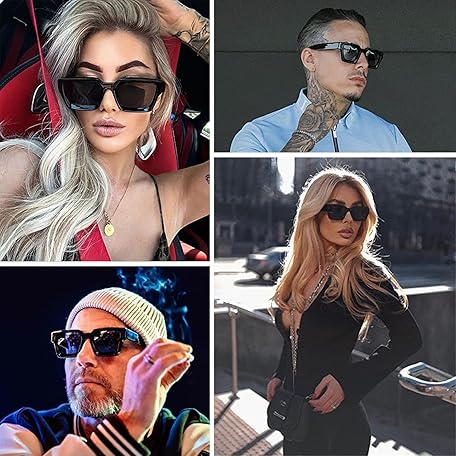 • Ggpyyon Vintage Rectangle Chunky Sunglasses Women Men Trendy Narrow Square Black Fashion 90s Lenses