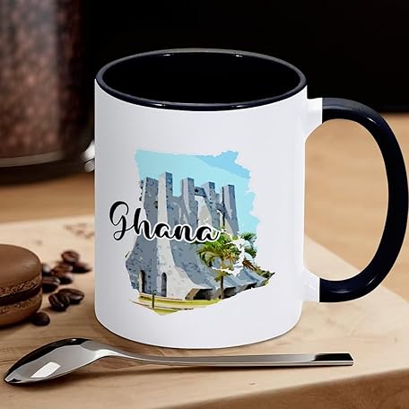 Ghana-Landmark-Landschaft, Teetasse, Ghana-Karte, Keramik-Kaffeetassen, Teetassen, personalisierbar, 325 ml, Geburtstagsgeschenk für Kaffee, Tee, heiße Schokolade, Milch, Wein, Weihnachtsgeschenk