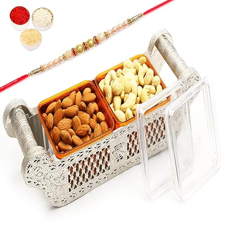 Sản phẩm Ghasitaram Gifts Rakhi Gifts for Brothers Rakhi Dryfruit - Set of Two Multipurpose Dryfruit Airtight Containers Jag with Pearl Rakhi đang được bán với giá ưu đãi là $11.336 tại nước Đức.