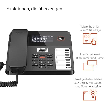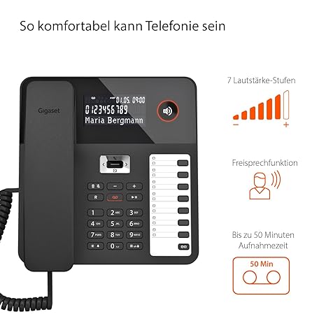 Thương hiệu Gigaset là cái tên nổi tiếng được rất nhiều khách hàng trên thế giới chọn lựa. Với kiểu dáng đẹp mắt, sang trọng, sản phẩm Gigaset Desk 800A - Corded Telephone with Answering Machine - Three-Line LCD Display - 5-Way Navigation Button - Hands-Free Function - MFV or Pulse Selection Black [German Version] là sự lựa chọn hoàn hảo nếu bạn đang tìm mua một món cho riêng mình.