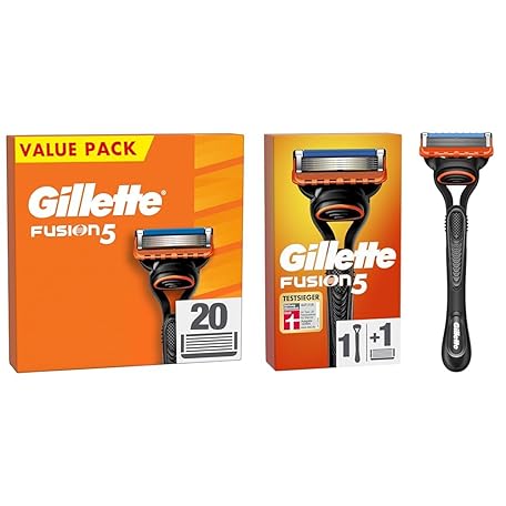 Gillette Fusion5 Rasierer, 21 ORIGINAL Ersatzklingen, Rasierer und Klingen für Herren, Größerem Gleitstreifen für ein Sanftes Gleiten, 5 Klingen für eine Unglaublich Gründliche und Komfortable Rasur