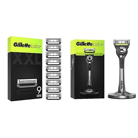 Gillette Labs Rasierklingen, 9 Ersatzklingen & Labs Nassrasierer Herren, Rasierer mit Reinigungs-Element + 1 Rasierklinge, Premium-Magnetdock