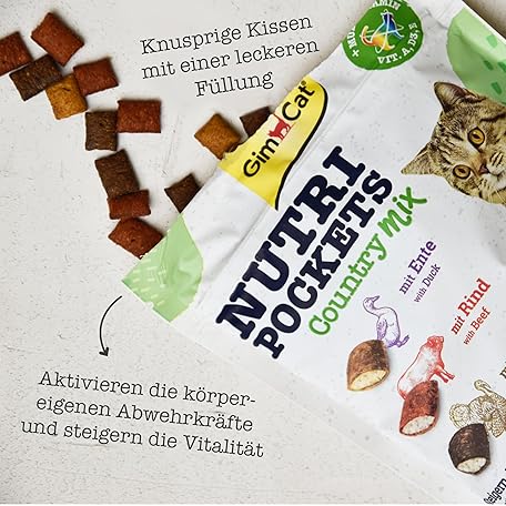 Sản phẩm GimCat Nutri Pockets Country Mix - Crispy Cat Snack with Creamy Filling and Functional Ingredients - 1 Bag (1 x 150 g) đang được bán với giá ưu đãi là $2.5288 tại nước Đức.