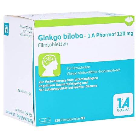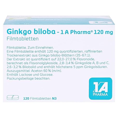Sản phẩm Ginkgo Biloba 1A PHARMA 120 mg Film-Coated Tablets Pack of 120 đang được bán với giá ưu đãi là $39.7196 tại nước Đức.