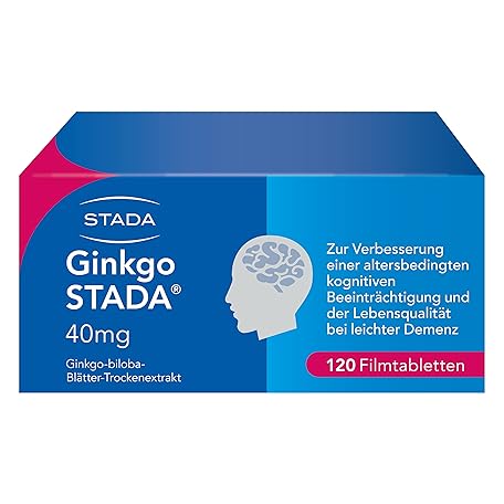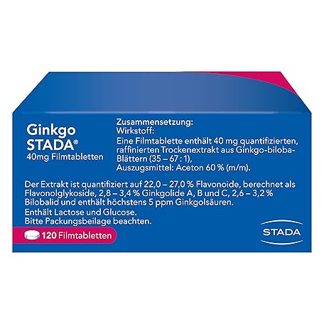 Ginkgo STADA 40 mg Film-Coated Tablets Promotes Blood Circulation of the Brain, Strengthens Memory and Concentration, for Permanent Use, High Extract Quality, Pack of 120