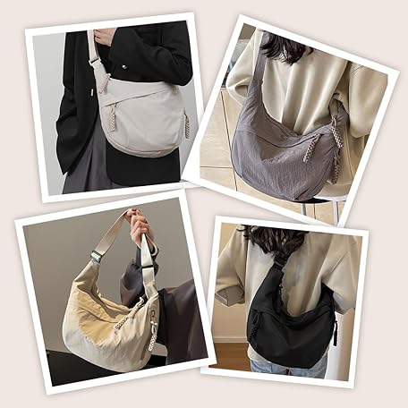 Thông tin sản phẩm givuaime Unisex Nylon Crossbody Bag, 2025 Nesuest Shoulder Bag, Large Crossbody Bag Women's with Adjustable Shoulder Strap, Half Moon Bag for School, Travel, Work, Outdoor