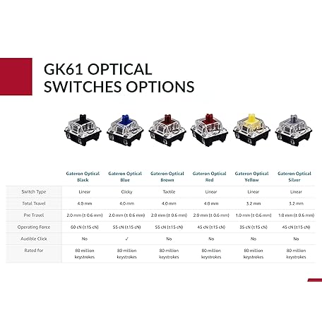 Mặt hàng này hiện nay đang có các phân loại Gateron Optical Brown, Gateron Optical Red, blue, lavender, pink, black, White, cho bạn nhiều sự lựa chọn phù hợp với cá tính và sở thích riêng của mình. Dự kiến hàng sẽ về đến Việt Nam từ 01-01-1970 đến 01-01-1970 nếu quý khách thực hiện thanh toán trong hôm nay.