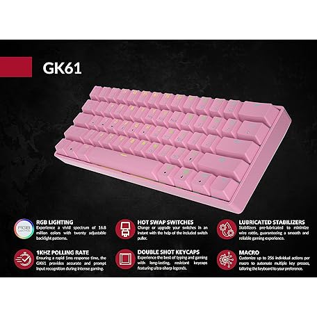 Sản phẩm GK61 Hot-Swap Mechanical Gaming Keyboard - 61 Keys Multicoloured RGB LED Backlight for PC/Mac Players (Gateron Optical Brown, Pink) đang được bán với giá ưu đãi là $25.6695 tại nước Đức.