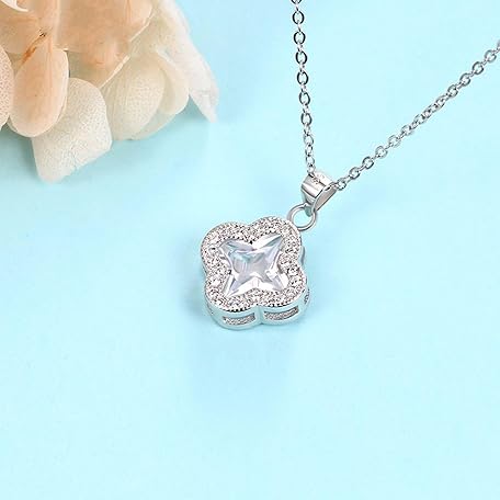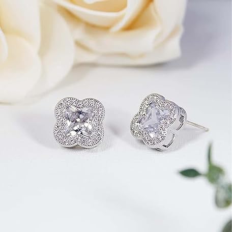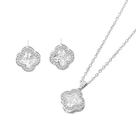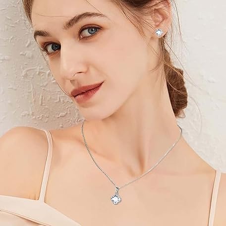 Gkaopi Four Leaf Clover Jewellery Set for Women and Girls Pendant Necklace Stud Earrings Hypoallergenic Jewellery Set Adjustable Chains Lucky Jewelry