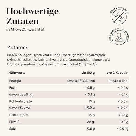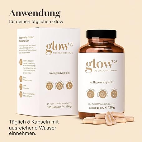 Sản phẩm Glow25® Collagen Capsules High Dose [180 Capsules] with Hyaluronic Acid and Vitamin C | Premium Collagen Complex | Laboratory Tested đang được bán với giá ưu đãi là $38.0301 tại nước Đức.