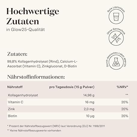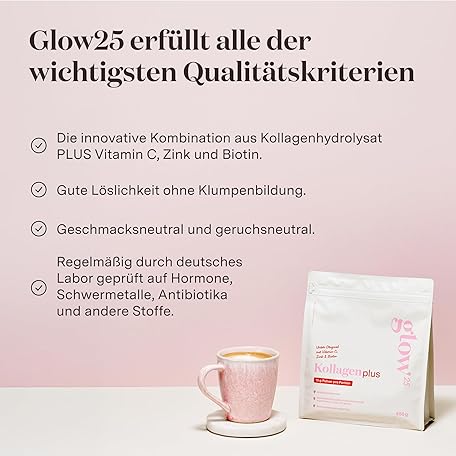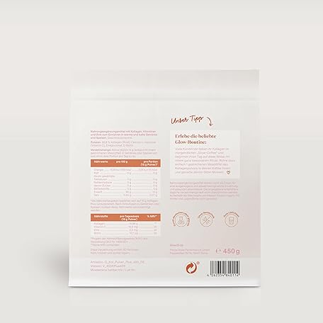 Sản phẩm Glow25® Collagen Plus Powder [450g] - Collagen Hydrolysate with Vitamin C, Zinc and Biotin - Peptides Type 1 and 3 - Good Solubility - Neutral đang được bán với giá ưu đãi là $50.6305 tại nước Đức.