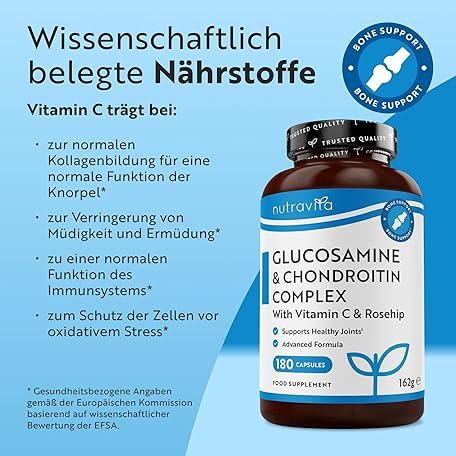 Sản phẩm Glucosamine and Chondroitin Complex, 180 Highly Effective Capsules with Vitamin C, Turmeric, Ginger and Rosehip, GMO-Free, Without Additives, High Dose đang được bán với giá ưu đãi là $25.3207 tại nước Đức.