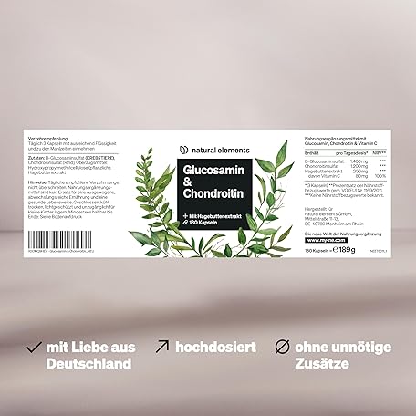 Thương hiệu natural elements là cái tên nổi tiếng được rất nhiều khách hàng trên thế giới chọn lựa. Với kiểu dáng đẹp mắt, sang trọng, sản phẩm Glucosamine & Chondroitin, 180 Capsules with Vitamin C, Contributes to Normal Collagen Formation, High Dose, No Unnecessary Additives, Produced in Germany & Laboratory-Tested là sự lựa chọn hoàn hảo nếu bạn đang tìm mua một món cho riêng mình.