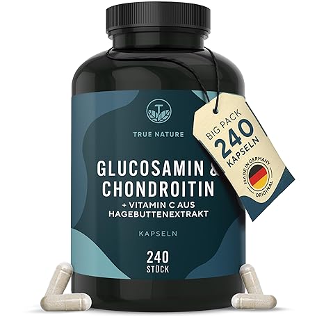 Glucosamine Chondroitin High Dose – Big Pack: 240 Capsules – With Vitamin C (Contributes to Normal Collagen Formation) – Pharmaceutical Quality – Made in Germany TRUE NATURE