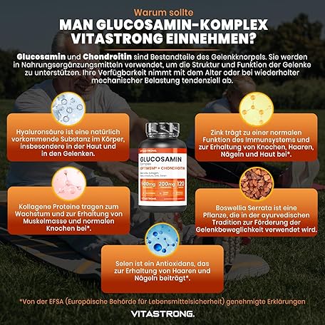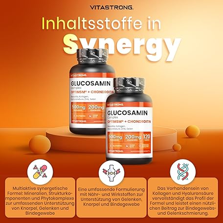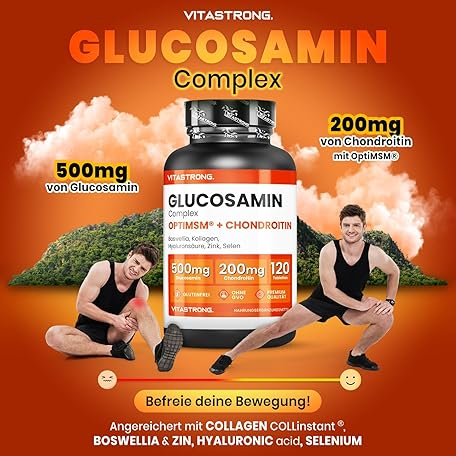 Sản phẩm Glucosamine Chondroitin with MSM Collagen and Hyaluronic Acid, Zinc, Selenium, Manganese, Boswellia, Glucosamine Complex MSM Supplement, Bones, Joints, Cartilage, Vitastrong Premium Quality, đang được bán với giá ưu đãi là $28.9068 tại nước Đức.