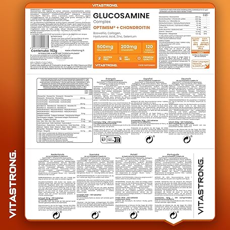 Thương hiệu Vitastrong. là cái tên nổi tiếng được rất nhiều khách hàng trên thế giới chọn lựa. Với kiểu dáng đẹp mắt, sang trọng, sản phẩm Glucosamine Chondroitin with MSM Collagen and Hyaluronic Acid, Zinc, Selenium, Manganese, Boswellia, Glucosamine Complex MSM Supplement, Bones, Joints, Cartilage, Vitastrong Premium Quality, là sự lựa chọn hoàn hảo nếu bạn đang tìm mua một món cho riêng mình.
