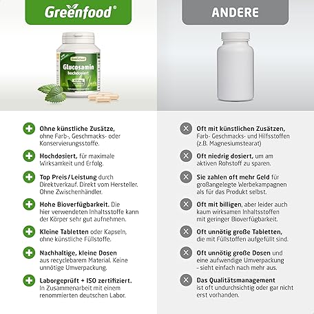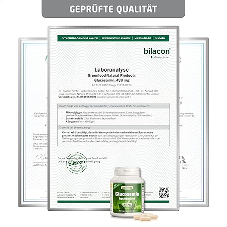 Sản phẩm Glucosamine, high dose, 430 mg - 120 capsules, vegan. High-quality glucosamine (glucosamine sulphate) - with high bioavailability. No artificial additives - laboratory tested. From Greenfood. đang được bán với giá ưu đãi là $26.8467 tại nước Đức.