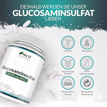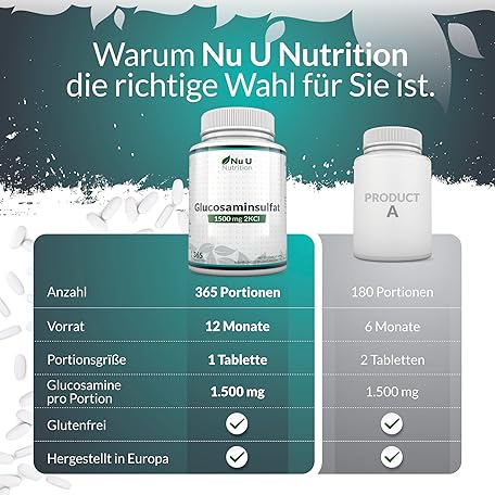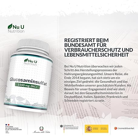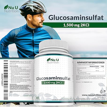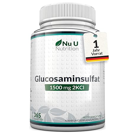 Sản phẩm Glucosamine Sulphate 1,500 mg 2KCI 365 Tablets Glucosamine (Supplies for one year) I No Gel, Capsules, Liquid or Powder | High Quality I Made in the UK by Nu U Nutrition đang được bán với giá ưu đãi là $28.9613 tại nước Đức.