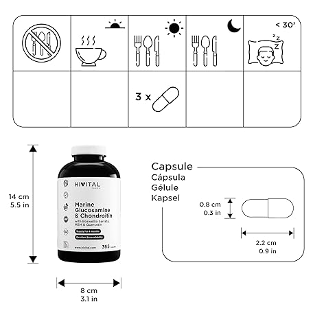 Sản phẩm Glucosamine with Chondroitin. 365 capsules for a 4 month treatment. With 1500 mg Marine Glucosamine 2KCL, Marine Chondroitin, MSM, Boswellia Serrata and Quercetin. Made by HIVITAL đang được bán với giá ưu đãi là $27.1737 tại nước Đức.