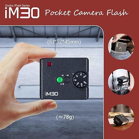 Thông tin sản phẩm Godox iM30 Mini Camera Flash, GN15 with 7 Levels Flash Power, CCT 6500K±200K with S1/S2 Optical Control for Canon/Sony/Fuji/Nikon/Panasonic/Olympus, for Cameras with Single-Contact Hotshoe