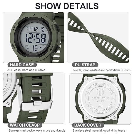 Sản phẩm GOLDEN HOUR Men's Waterproof Digital Watches with Wide Screen Easy to Read Display Military Style with Rubber Strap đang được bán với giá ưu đãi là $32.7654 tại nước Đức.