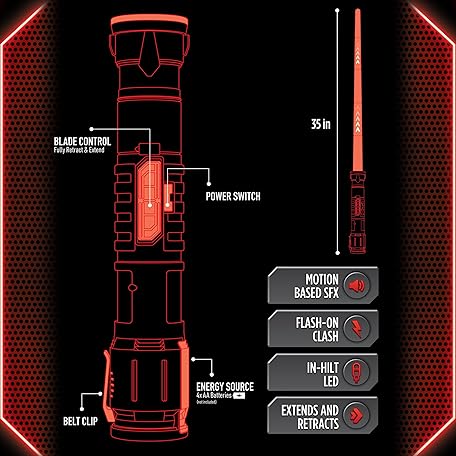 Goliath Power Saber Red - Laser Saber for Children from 6 Years, Automatically Extendable and Retractable, Realistic Laser Toy, Intergalactic Combat, 30 cm / Extended 90 cm, Box Window