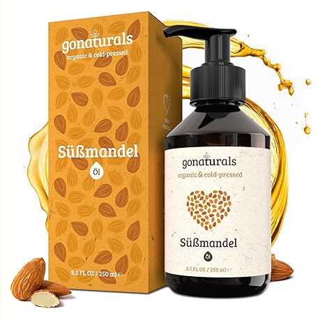 GoNaturals® Certified Organic Sweet Almond Oil, 250 ml, 100% Pure & Cold Pressed, Hexane and Fragrance-Free, Moisturising Almond Oil for Face, Hair, Nails, Baby, Body Oil