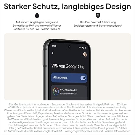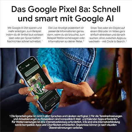 Thông tin sản phẩm Google Pixel 8a: Android Smartphone without SIM Lock with Advanced Pixel Camera, Long Battery Life and Powerful Security Functions – Obsidian, 256 GB
