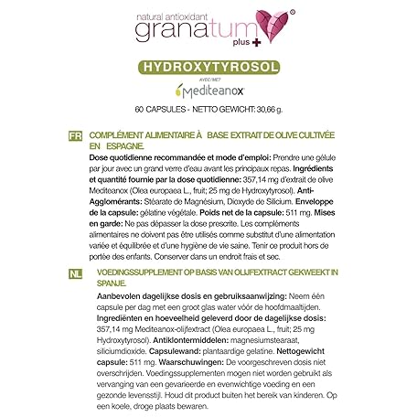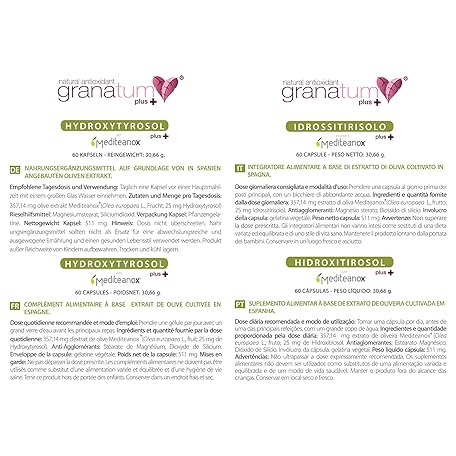 Sản phẩm Granatum Plus - Hydroxytyrosol Plus - Dietary Supplement - Derived from Extra Virgin Olive Oil - Antioxidant Supplement - General Wellbeing - Made in Spain - 1 Box 60 Tablets đang được bán với giá ưu đãi là $42.3792 tại nước Đức.