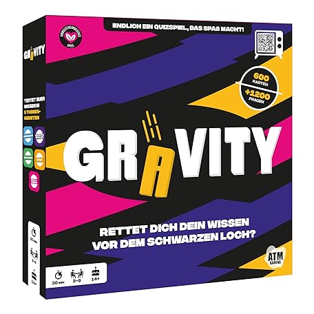 Thương hiệu ATM Gaming là cái tên nổi tiếng được rất nhiều khách hàng trên thế giới chọn lựa. Với kiểu dáng đẹp mắt, sang trọng, sản phẩm Gravity - Board Game - Strategy and Knowledge Game - Quiz Game for General Knowledge with Friends and Family - Board Game for Adults - 2 to 8 Players là sự lựa chọn hoàn hảo nếu bạn đang tìm mua một món cho riêng mình.