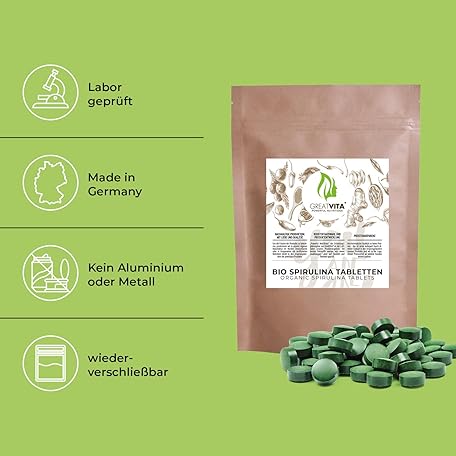 Sản phẩm GreatVita Bio Spirulina Tabletten (500mg) ca. 800 Tabletten Spirulina Alge 400g im Beutel đang được bán với giá ưu đãi là $12.5895 tại nước Đức.