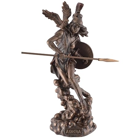 Greek Goddess Athena on Cloud with Spear Made of Artificial Stone Bronzed Coloured Veronese