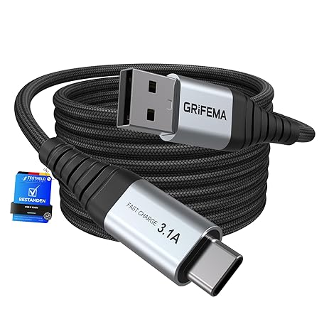 GRIFEMA USB C Cable [2 m], 3.1 A Charging Cable, USB C Nylon Braided Fast Charging Cable, USB to USB C Cable for iPhone 16/15, Samsung Galaxy S23/S22, Huawei, Google Pixel, MacBook, iPad Pro and More