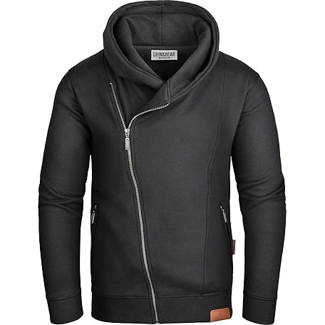 Grin&Bear GEC016 Men's Hooded Jacket, Hoodie with Slanted Zip