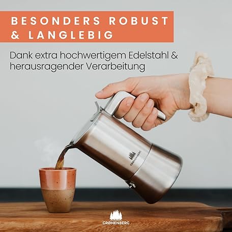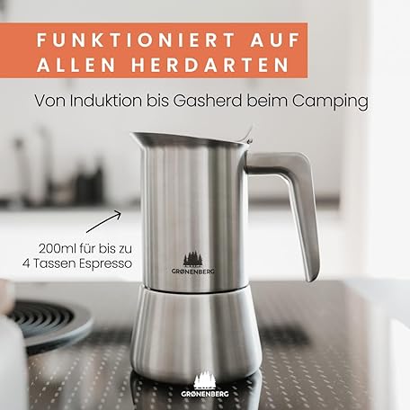 Sản phẩm Groenenberg Espresso Maker Suitable for Induction Cookers, Stainless Steel 4-6 Cup Espresso Jug, 200-300 ml Mocha Pot, Aluminium Free with Replacement Seal and Instructions (English Language Not Guaranteed) đang được bán với giá ưu đãi là $54.3256 tại nước Đức.