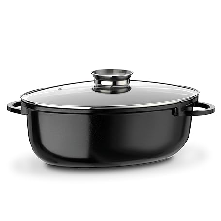 Thông tin sản phẩm GSW 410588 Gourmet Ceramica Induktion Bräter XXL oval mit Aroma-Glasdeckel 10 L, Aluguss, schwarz gesprenkelt, 42 cm 4 Einheiten