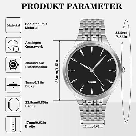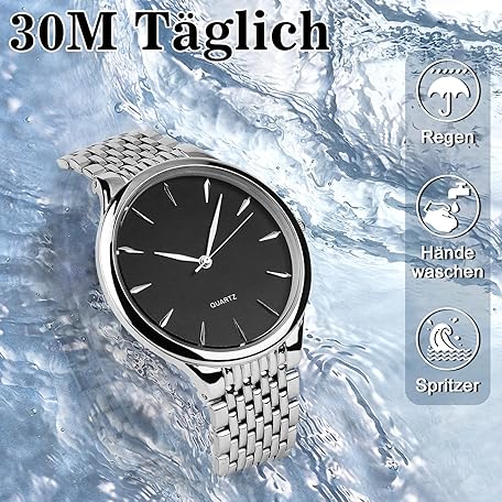 Thông tin sản phẩm GUUMUXIN Women's Analogue Quartz Watch (27 mm Diameter), 30 m Waterproof Stainless Steel Strap, Silver, Elegant Watch for Women, silver, Classic business casual