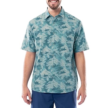 Guy Harvey Kurzärmeliges Performance-Angelshirt für Herren, Blue Steel/Urban Palms, Mittel