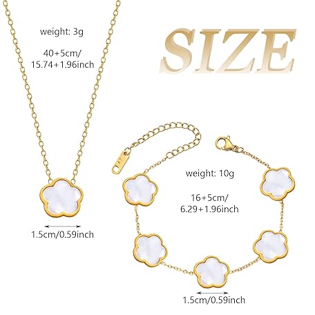Thông tin sản phẩm GWAWG 3-Piece Clover Jewellery Set for Women, 18K Gold Stainless Steel Necklace and Bracelet Set, Cubic Zirconia Bangle Gift for Mother's Day, Valentine's Day, One size, Alloys, No Gemstone