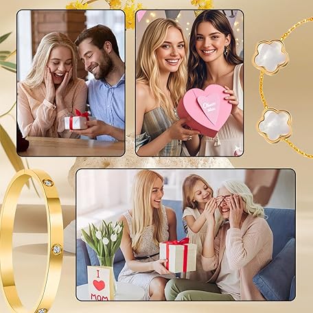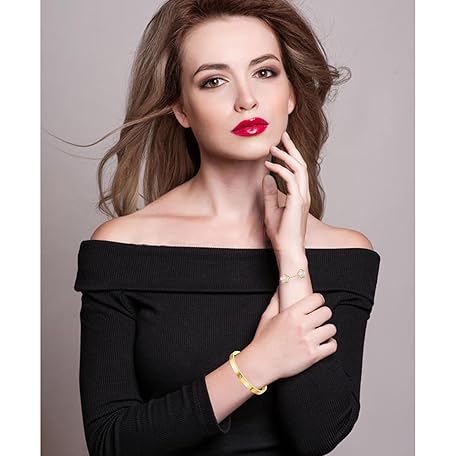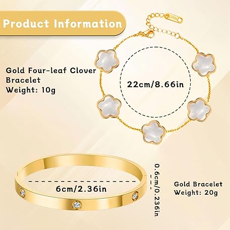 Thông tin sản phẩm GWAWG Lucky Clover Bracelet for Women Set of 2 Bracelets for Women Stainless Steel 18K Gold Plated Jewelry with 4 Leaves Clover Leaf for Weddings, Birthdays, Parties and Lucky Gifts