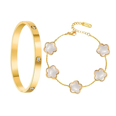 Sản phẩm GWAWG Lucky Clover Bracelet for Women Set of 2 Bracelets for Women Stainless Steel 18K Gold Plated Jewelry with 4 Leaves Clover Leaf for Weddings, Birthdays, Parties and Lucky Gifts đang được bán với giá ưu đãi là $15.2164 tại nước Đức.